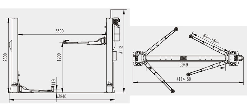 等臂设计,4个3级臂组合,适用于举升更多车型