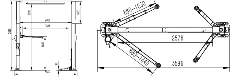 • 龙门式举升机,手动单边解锁