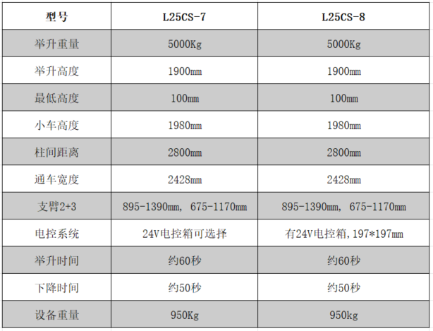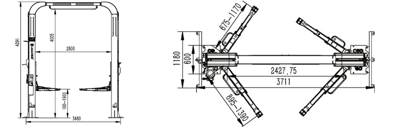 弧形龙门式举升机,手动单边解锁