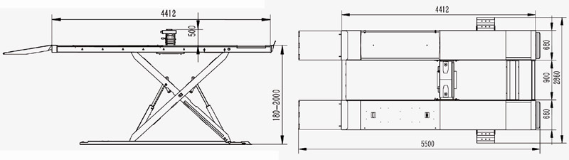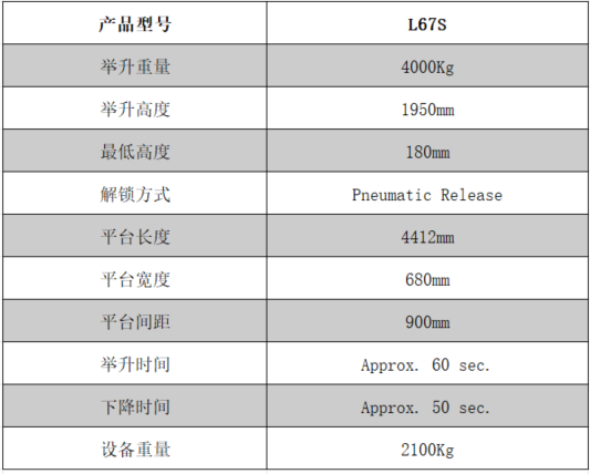 超薄式大剪式举升机,气动解锁