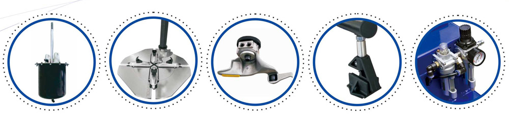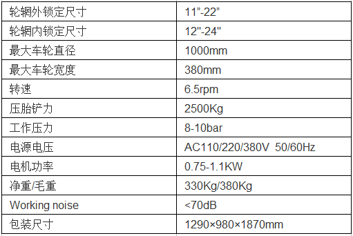 该机可选配拆装头保护套、保护垫、夹爪保护套、撬棍保护套和靠胎铲防护套。在拆装铝合金轮胎时不会划伤轮辋