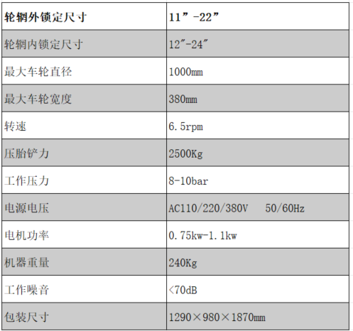 • 具有中心定位装置,从而使轮胎与圆盘瞬间定位后保持同心园