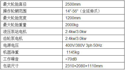 工作臂具有快速旋转系统和可逆旋转,适用于更换不同类型的轮胎和车轮
